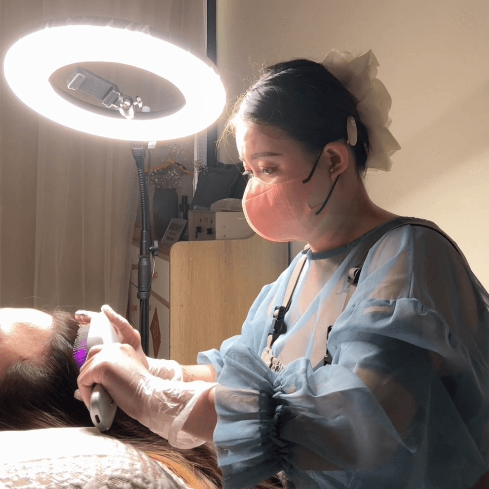 依狀況搭配光感養護,溫和照護頭皮環境。(本服務屬一般養護,非醫療行為)